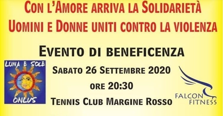 La ag Falcon Fitness QSE si dipinge di rosso Evento di BENEFICENZA contro la VIOLENZA sulle donne Sabato 26 settembre alle ore 20.30 presso il Tennis Club di margine rosso UNITI con le donne